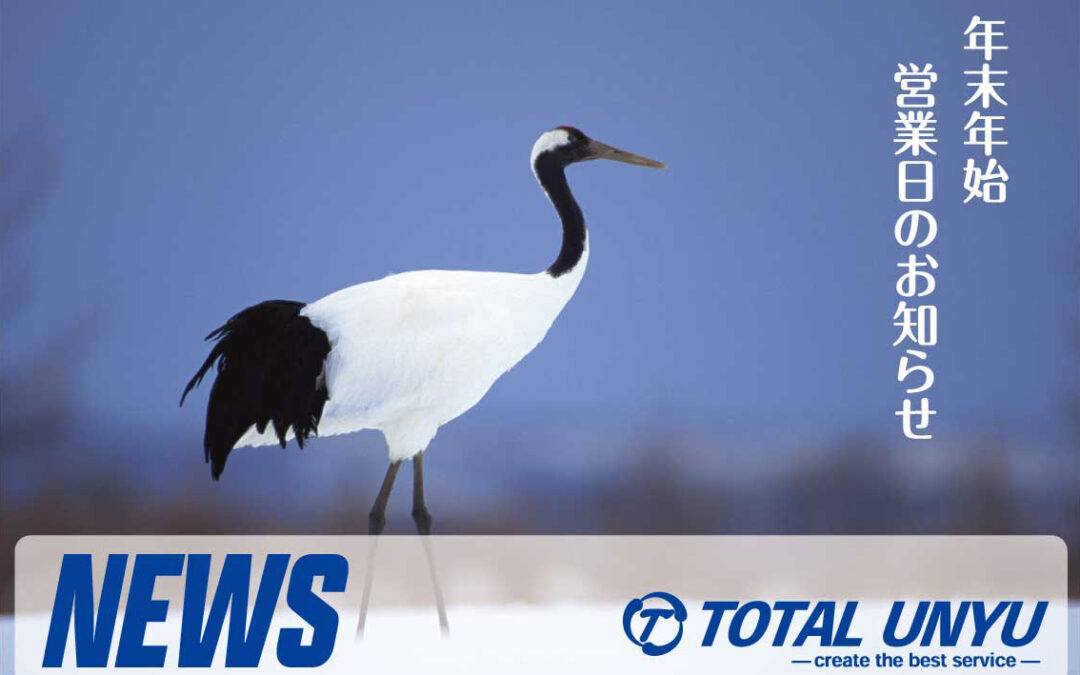 さて、株式会社トータル運輸では年末年始の休業日につきまして、下記のとおり休業日とさせていただきます。